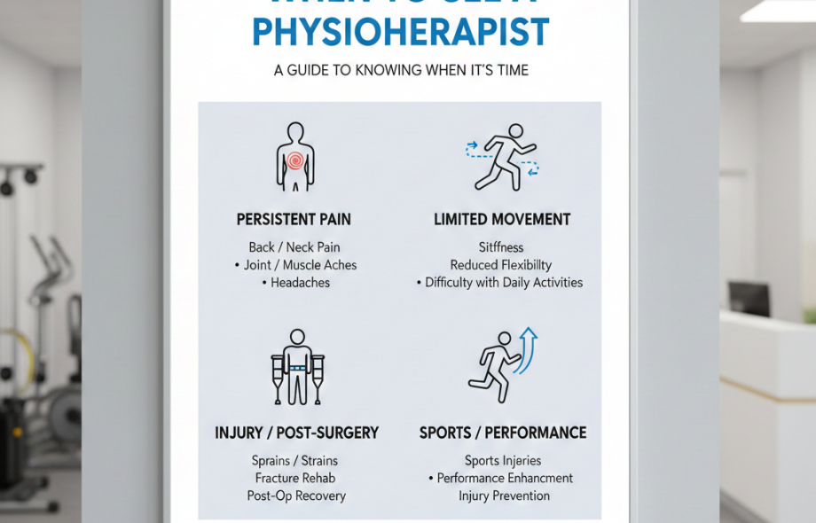 Overall, if you’re experiencing any physical discomfort, limitation in mobility, or have specific rehabilitation or performance goals, it may be time to see a physiotherapist. By seeking their expertise early on, you can address potential issues before they worsen and improve your overall quality of life.